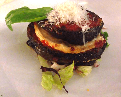 Berenjena al horno con queso y confitura de tomate