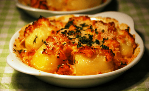 Patatas gratinadas al horno con queso Roncal
